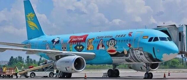 下面的这架飞机是日本航空公司的作品,卡通缤纷的喷涂不仅赚足了眼球,而且吸引了很多少儿乘客,但是你仔细看就会发现上面讲到的那些不适宜喷涂的地方还是有所留白,所以在做好“面子工程”的同时,飞机的安全性还是要排在第一位。