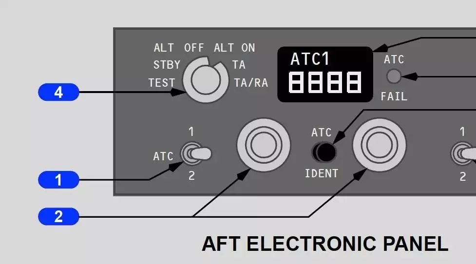 上图为一个常见的应答机面板,注意这个面板位于后电子面板
