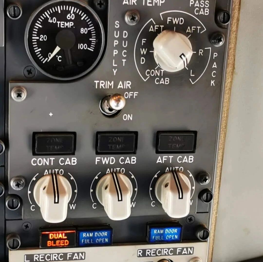 左ECS=OFF,右ECS=HI (巡航时襟翼收上,左空调组件在关闭位,右组件在AUTO位会自动切换成高流量模式)