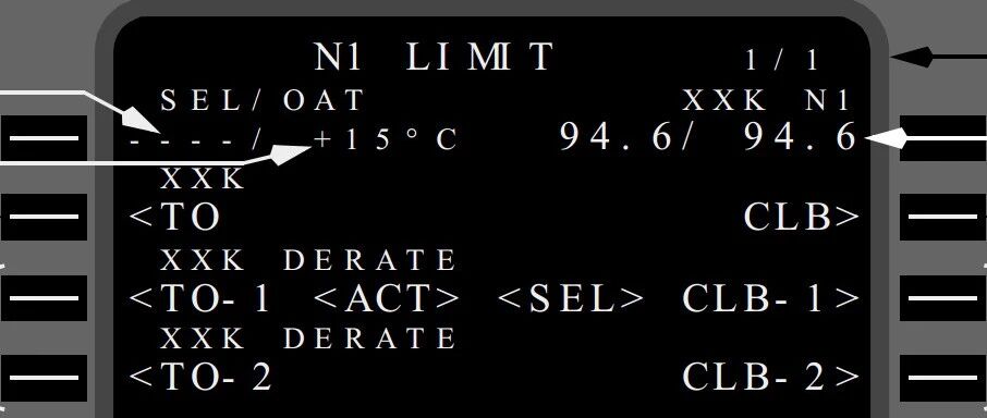 为了防止发动机超温,增加发动机的寿命,通常需要使用减推力起飞。一般做法是,在CDU上输入一个较高的假定温度,FMC将计算一个较低的N1限制值来提供较高温度下的额定推力。允许的最大输入是70摄氏度(158华氏度)。但FMC会限制N1最多25%的起飞减推力。