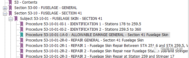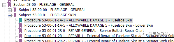 在SRM53-00-01找到机身蒙皮有2个允许损伤章节。