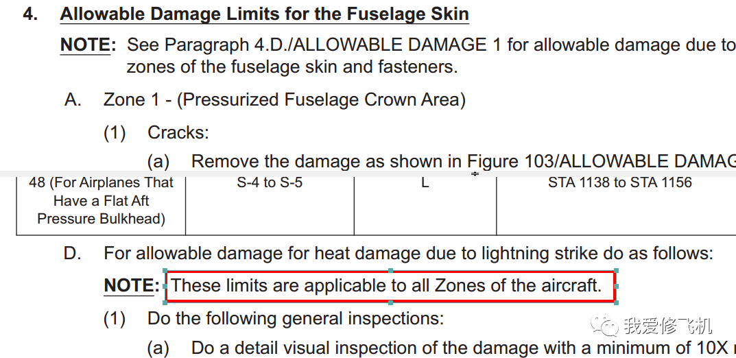 注:上一步已确认雷击允许损伤在4.D.,其实这一步不用再看。但是按一般思维看到损伤在区域2会直接跳到这一步,不会仔细再看图中其他注释,所以试试看走得通不通。