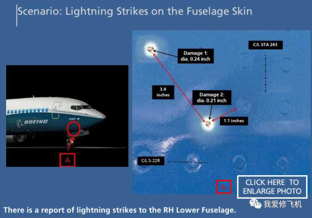 (a)雷击点最大直径0.24英寸,手册要求小于0.25英寸,在标准内。