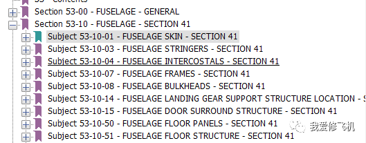 机身结构属于53章,到SRM53-00-00找雷击点机身站位STA243,属于机身段(SECTION) 41.