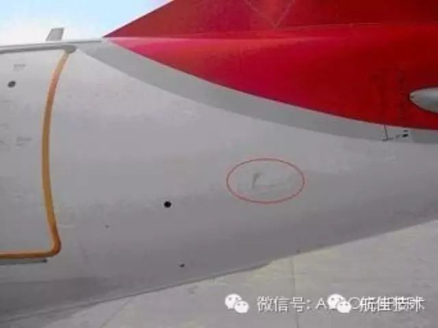 某飞机在进行航后工作时,由于配餐车过于靠近飞机导致车厢上升时撞伤机身蒙皮(如下图所示)。