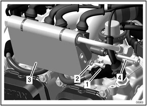 4 | 对气缸2和气缸4而言,拧松燃油压力调节器和M5x35 Allen螺丝。 |