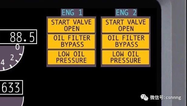 值得注意的是,当起动活门打开信息闪亮时,DEU三个机组警示信息,即起动活门打开,滑油滤旁通和低滑油压力信息,都同时闪亮十秒,最后只有起动活门打开信息保持常亮。我的理解是三个信息同时闪亮更能引起机组的注意,以便能及时采取措施。在手册其他章节对其他两个警示信息也有同样的描述。