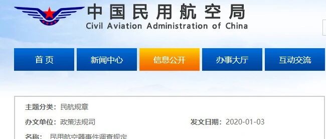 《民用航空器事件调查规定》已于2019年12月30日经第31次部务会议通过,现予公布,自2020年4月1日起施行。