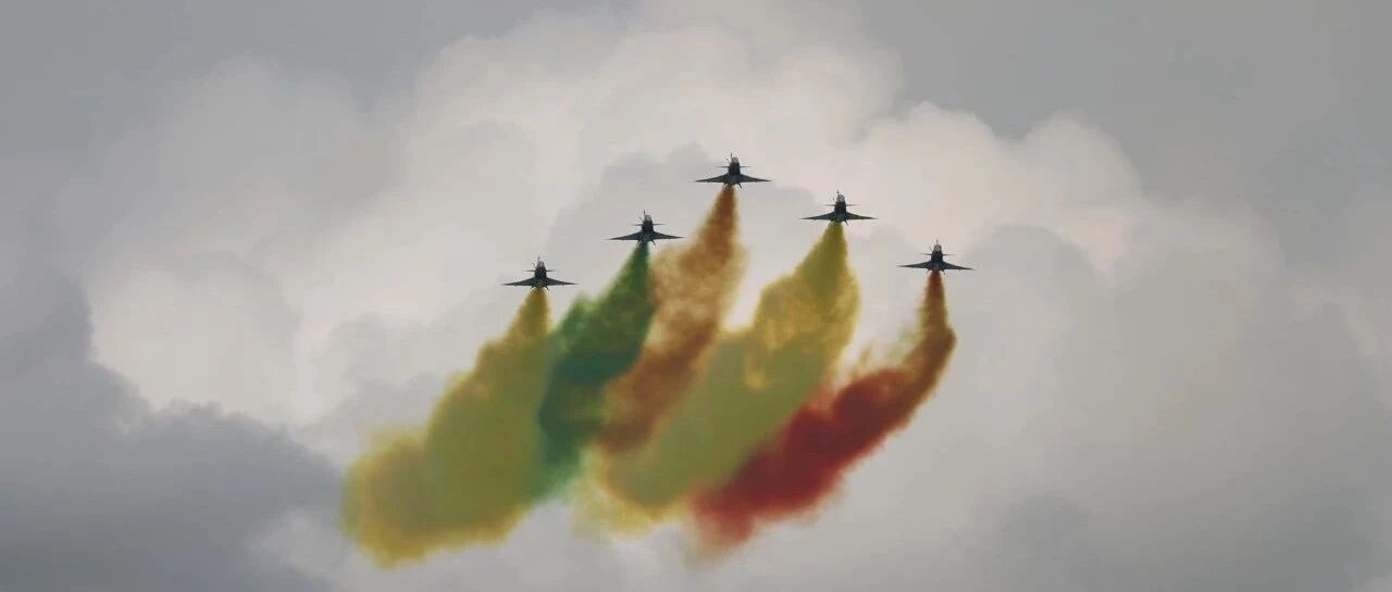 2月11日,新加坡航展开幕式上空军八一飞行表演队正在飞行表演(朱姜海摄)