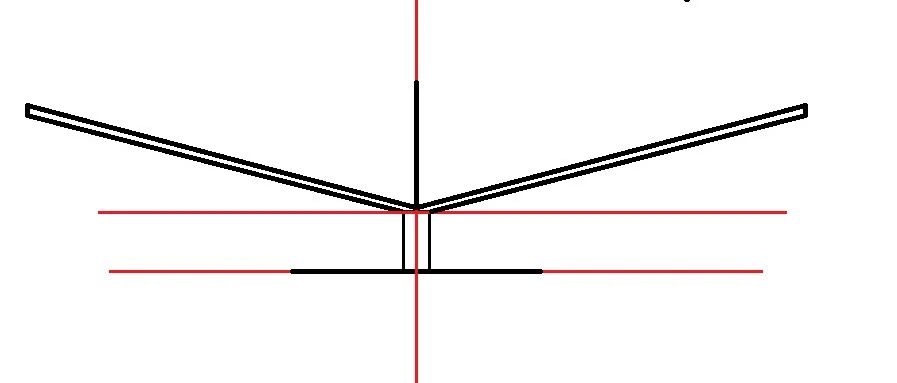 以水平尾翼为参考,从机头方向正视,垂直尾翼应该和水平尾翼垂直,左右机翼的上反角应该相等,左右机翼的安装角也相等,见下图。