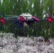 2020年,库尔勒市利用植保无人机雾化立体授粉,是一种全新的方式,2019年已经在库尔勒市无人机授粉作业面积已超过万亩,效果显著。