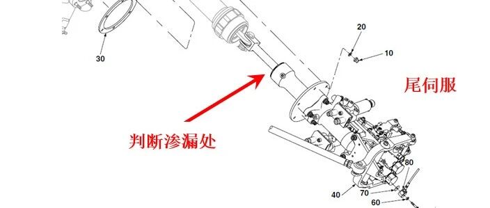 拆下尾伺服进行检查,发现尾伺服的输出活塞杆有轻度磨损,有液压油从活塞杆封严处渗出(图3),确认活塞杆和输出封严磨损是渗漏的主要原因。维修人员更换尾伺服后,故障排除。