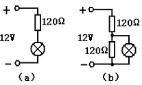 在图中的两个电路中,要在12V的电源上使6V/50mA的灯泡正常发光,应该采用电路()。